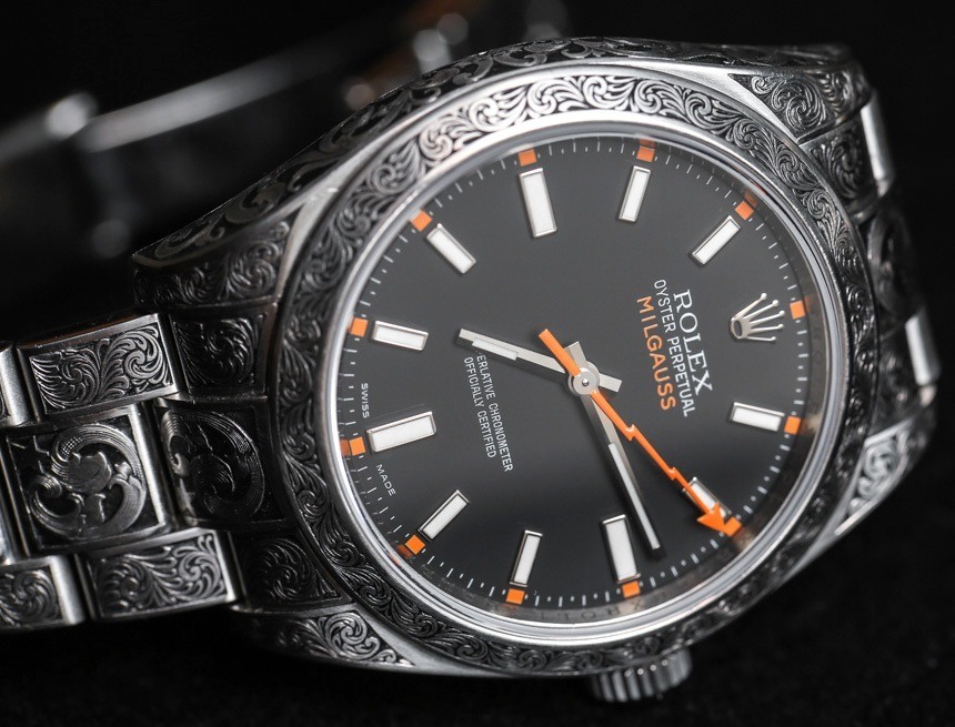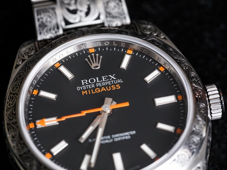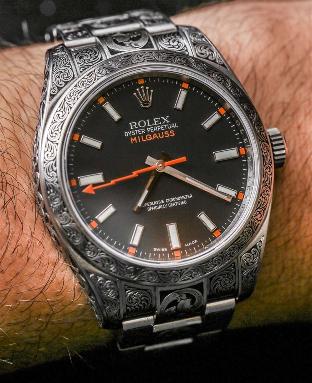 真正讓我覺得這款雕刻的勞力士 Milgauss 116400 手表的一件事是,它是一款非常漂亮的手表。例如,如果手表的其余部分與雕刻的主題相同,這將是一款完全不同的手表。我并不是說它會更好或更壞,但它會完全不同。我也喜歡這是一款現代勞力士 Milgauss 而不是復古款 – 所以你可以將看起來很新的東西與更具復古感的東西結合起來。