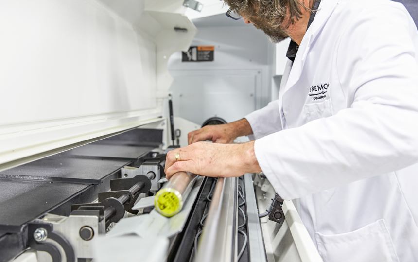 在一系列新機(jī)器(例如精美的 11 軸 CNC 銑床和激光雕刻機(jī))上方,是 Oracle Team 美洲杯帆船賽的超長(zhǎng)硬帆尖,恰好存放在這里。我猜 Larry Ellison 只是把它交給了 Bremont 男孩,然后說(shuō)“你能用它做任何事嗎?”?去年,Bremont 宣布了他們最近的合作伙伴關(guān)系,其中不僅包括贊助 Oracle 創(chuàng)始人拉里埃里森的“美國(guó)隊(duì)”,還包括贊助美洲杯帆船賽——一項(xiàng)最初在英國(guó)樸茨茅斯開(kāi)始的賽事。
