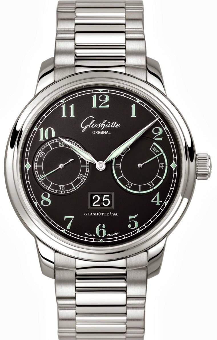 Glashütte Original 格拉蘇蒂原創采用黑色表盤,提供由 18k 白金制成的新型大號夜光指針。同樣,除了日期指示盤外,整個表盤幾乎都應用了發光體。發光體的設計甚至具有藝術性,據該品牌稱,用于格拉蘇蒂原創參議員觀察家表盤的字體對他們來說是全新的,靈感來自實際的老式觀察鐘。我真正喜歡的是它將運動的可讀性與德國人特別擅長的一點裝飾價值結合得很好。