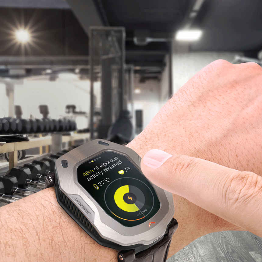“先生,我的電池電量為 23%,我們今天沒有完成您的鍛煉目標(biāo)。我可以推薦 46 分鐘的劇烈運(yùn)動嗎?” 通過利用佩戴者定期鍛煉的需要,Urwerk HIS 手表可以通過提醒佩戴者該運(yùn)動了來滿足兩個目標(biāo)——健身和電池充電。鍛煉會產(chǎn)生熱量和運(yùn)動,通過達(dá)到一個人的健身目標(biāo),Urwerk HIS 手表可能會持續(xù)數(shù)周而無需使用外部方式充電。Urwerk HIS 還可以就其需要多少能量提出智能建議。對于輕度充電,它可能會建議以快走的形式進(jìn)行鍛煉。在電池壽命低得多的情況下,它可以通過說“先生,您對跑步感到無聊。試試網(wǎng)球。