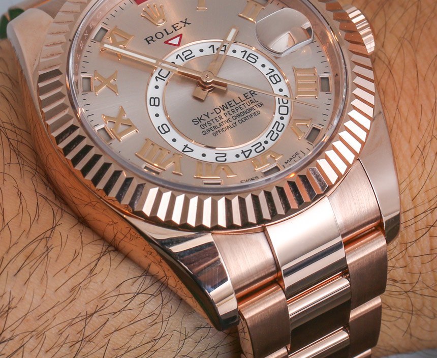 最初的勞力士 Sky-Dweller 手表確實有 Everose 型號,但它配備了帶有深色表盤的表帶。人們想要一款與表殼顏色更中性的手鐲——就是這樣。這是勞力士 Sky-Dweller 手表中最經典的“勞力士”,在我看來——好吧,僅次于勞力士 Sky-Dweller 型號 326938,后者是 18k 黃金版本,搭配手鏈和“香檳色表盤”。