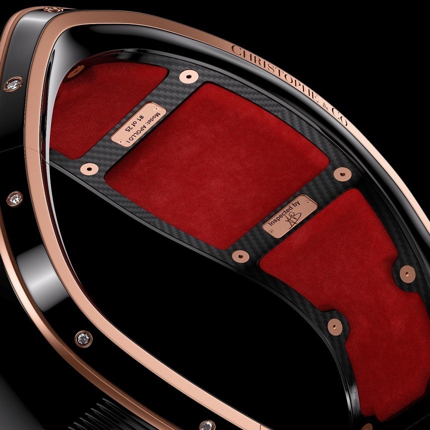 據該品牌稱,每輛 Christophe & Co. Armill 都將在英國生產,并以碳纖維內框開始(顯然也在英國生產)。除此之外,還有從 18k 金到高科技陶瓷以及寶石的一系列材料。雖然 Christophe & Co. Armill 有各種限量版,但該公司已明確表示,他們希望每件作品都為佩戴者量身定制——并且通常尺寸完美貼合佩戴者的手腕。其他裝飾功能包括在某些型號上進行手工雕刻。