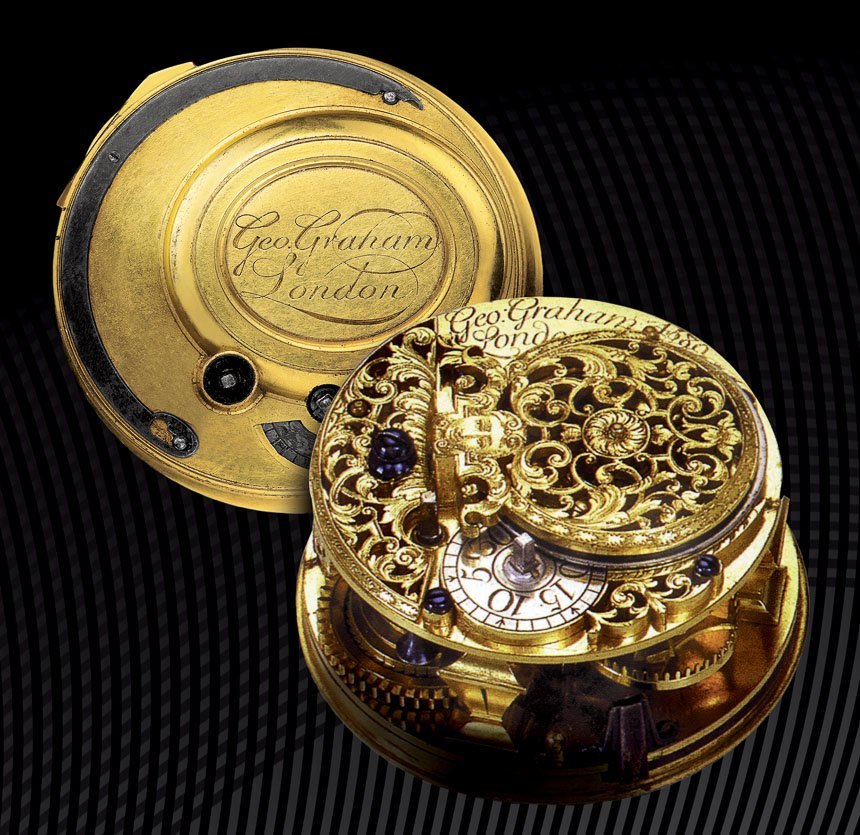 帶有小時和分鐘以及 60 秒陀飛輪作為秒指示器的純時間陀飛輪手表對我來說是一種罪惡感。當我發現一款在視覺上很吸引人時,我會試著想出佩戴它的理由,盡管我通常不做正裝表。Geo.Graham Tourbillon 寬 40 毫米,搭配 18k 玫瑰金表殼,顯得樸素。它也恰好很薄,只有 9.85 毫米厚。Graham 提供了一些歷史悠久的 George Graham 懷表圖片,旨在幫助您了解 Graham 在設計 Geo.Graham 陀飛輪時使用的視覺靈感。廣告留言廣告信息結束