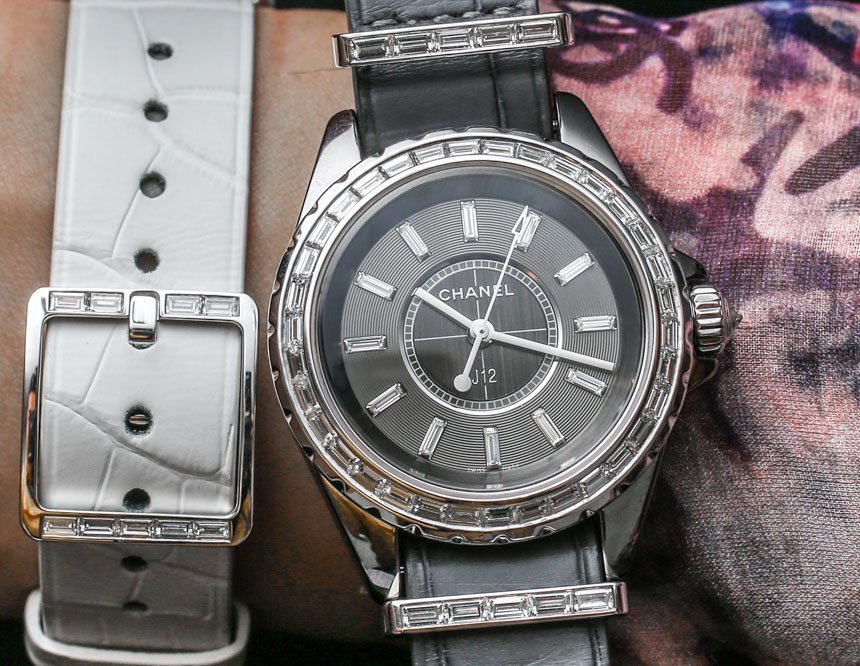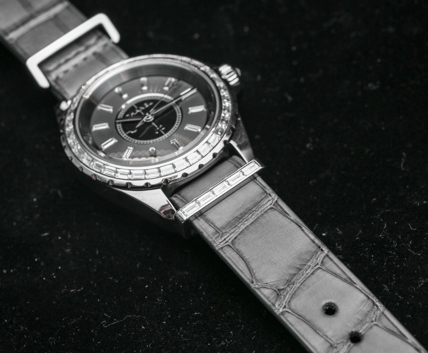 雖然也有 NATO 皮革表帶可供選擇,但 Chanel 直接為他們的 Chanel J12 G10 手表選擇了鱷魚皮。“硬件”(金屬部件)為 18k 白金或精鋼,具體取決于版本。此外,五金鑲嵌鉆石。當我第一次在 Baselworld 2014 看到它時,我傻笑著想,“好吧,現在我們有珠寶北約表帶了。” 至少在今年,所有 Chanel J12 G10 手表都有鉆石,這與圍繞 NATO 表帶易于使用的典型“行人”概念形成了有趣的背離。NATO 表帶深受喜歡復古手表現代化的潮人以及想要為其運動手表增添一些色彩和盡可能舒適的運動手表愛好者的歡迎,很少說“奢華”。直到 Chanel 決定將 NATO 表帶的概念用于他們自己的高端時尚目的。