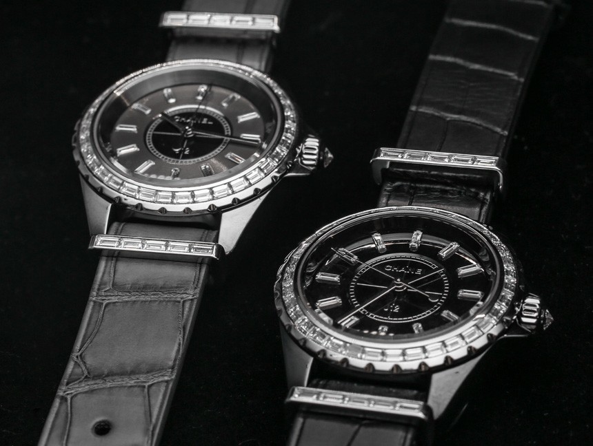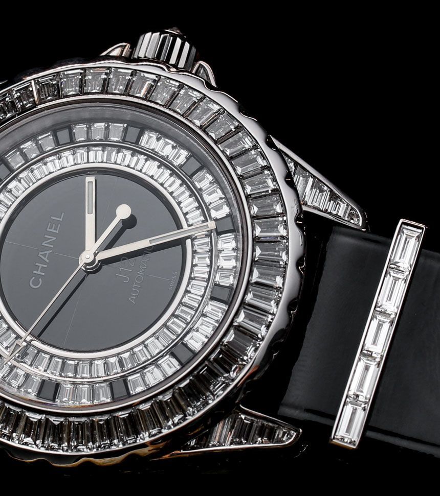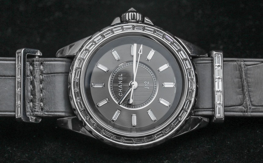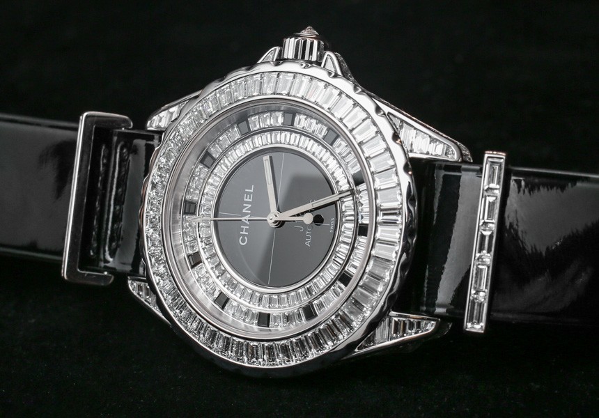 目前,“入門級”香奈兒 J12 G10 手表將采用明亮式切割鉆石。表殼上的金屬元素是鋼,考慮到鉆石的形狀,它們比克拉更密集的長方形切割寶石便宜。具有諷刺意味的是,明亮式切割的寶石更小,但確實往往更……明亮,就光澤度而言。帶有長方形切割寶石的 Chanel J12 G10 版本將搭配 18k 白金金屬元素,包括表帶硬件和表圈(以及可能用于表殼的 18k 白金,這在 J12 手表上不是陶瓷的) ).