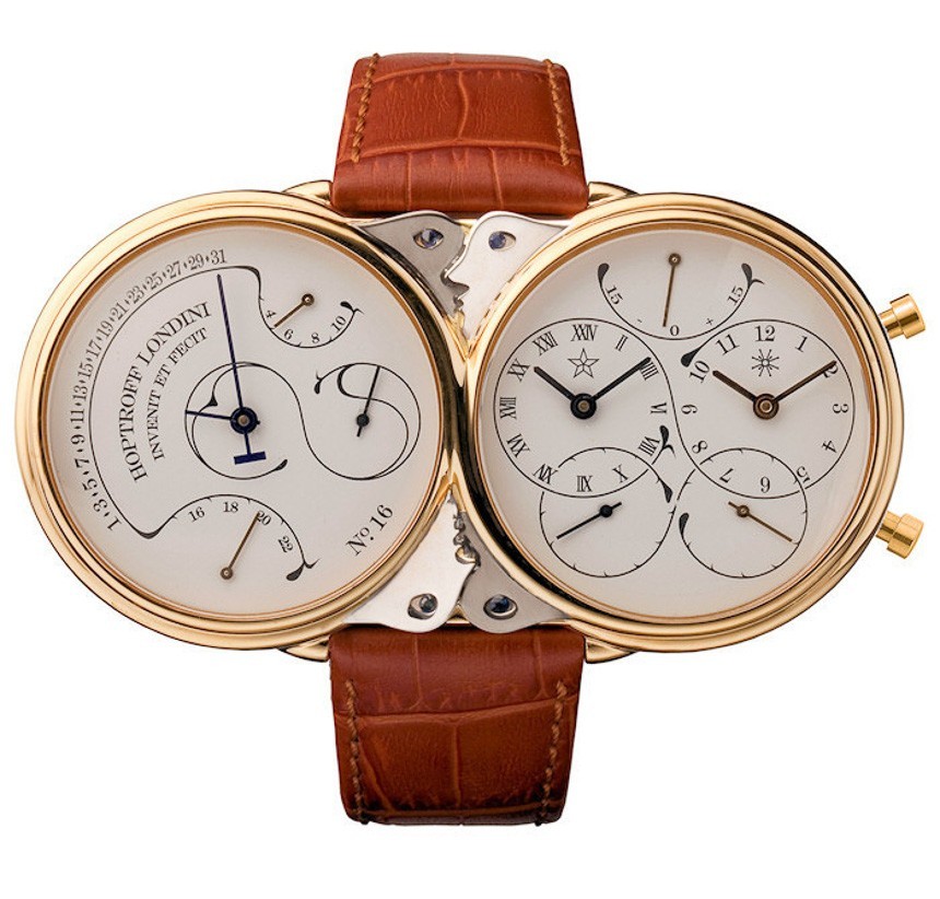 Hoptroff 試圖通過其經典派生的設計為這款公認的書呆子手表小工具賦予一點舊世界的氣息。霍普托夫甚至聲稱受到已故偉大的英國制表師喬治丹尼爾斯和他的天文主題太空旅行者時計的影響。為了讓 Hoptroff No. 16 原子腕表的視覺質量更小,Hoptoff 將表殼分成兩個并排的表盤,使這款手表略微讓人聯想到 MB&F Horological Machine No. 1 (HM1)。霍普托夫聲稱,這種設計方案是為了讓人們想起數字 8 的無限符號——如果你仔細觀察,從技術上講,雙表盤就是這個符號。還有一些令人毛骨悚然的面孔在兩個表盤之間互相看著。您可以在表盤上看到更多無限符號主題。