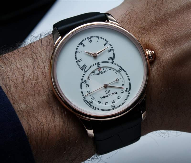 具有諷刺意味的是,Jaquet Droz?Grande Seconde Quantieme 腕表最初以鋼材發(fā)布,作為高端品牌的低價(jià)型號(hào)。這是在 2011 年,我們?cè)谶@里對(duì)精鋼 Jaquet Droz Grande Second Quantieme 腕表進(jìn)行了評(píng)論。2014 年,雅克德羅 (Jaquet Droz) 發(fā)布了這款“日歷”(quantieme) 大秒針腕表的黃金款和琺瑯表盤款的一些新版本。