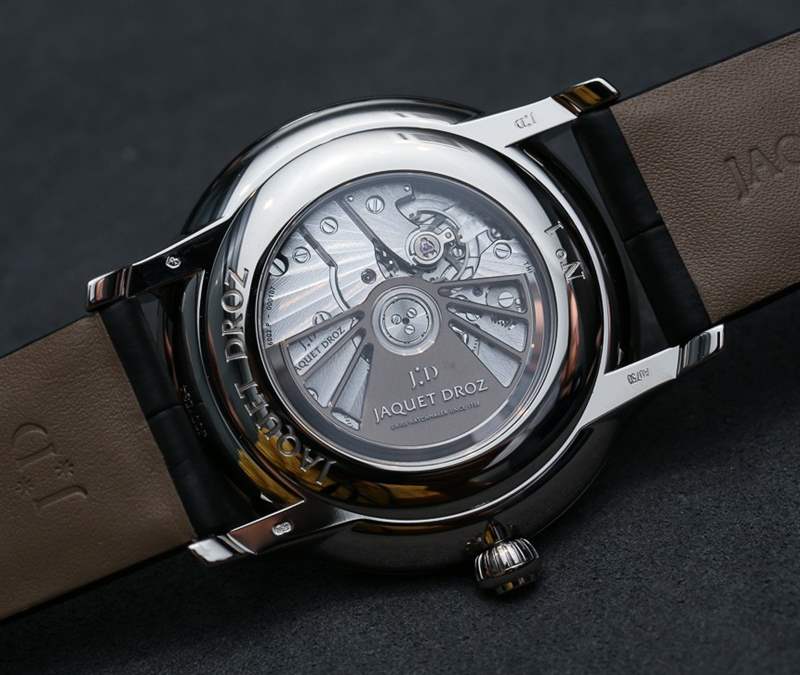 我發(fā)現(xiàn)自己常問的一個(gè)常見問題是雅克德羅大秒針腕表系列是否適合正裝或休閑裝——或兩者兼而有之。它不完全是一款表殼更結(jié)實(shí)但更精致的正裝表,也不是一款外觀和表盤設(shè)計(jì)更優(yōu)雅(防水深度僅為 30 米)的運(yùn)動(dòng)表。我見過在公共場合佩戴 Jaquet Droz Grande Seconde 手表的人往往是獨(dú)立的思想家,具有時(shí)尚的風(fēng)格,而且通常對(duì)手表情有獨(dú)鐘。無論雅克德羅 (Jaquet Droz) 手表多么優(yōu)雅或古怪,該品牌都無可否認(rèn)地前衛(wèi)——這使其在斯沃琪集團(tuán)品牌中獨(dú)樹一幟。