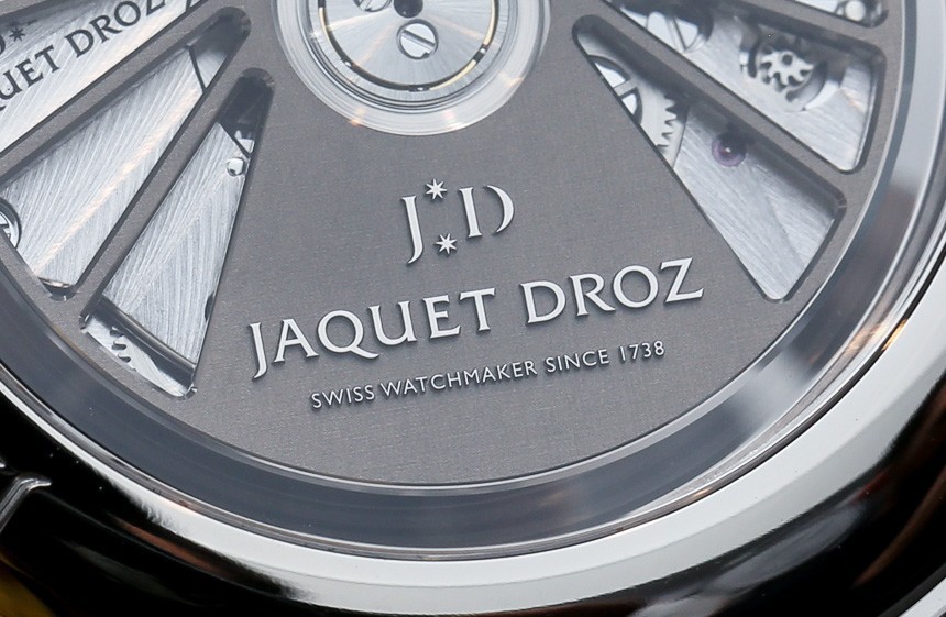 過去,雅克德羅 (Jaquet Droz) 曾為雅克德羅 (Jaquet Droz) 大秒針 (Grande Seconde Quantieme) 和大秒針 (Grande Seconde) 系列的其他表款嘗試采用較暗的表盤顏色。我認(rèn)為它們的效果不如淺色表盤,因?yàn)橐鬃x性受到很大影響。這并不意味著它們不是大秒針的良好深色表盤顏色,但它們不如象牙色、白色或銀色表盤常見。如果您對(duì)易讀性感興趣(并且您應(yīng)該對(duì)易讀性感興趣),這就是某種方式。