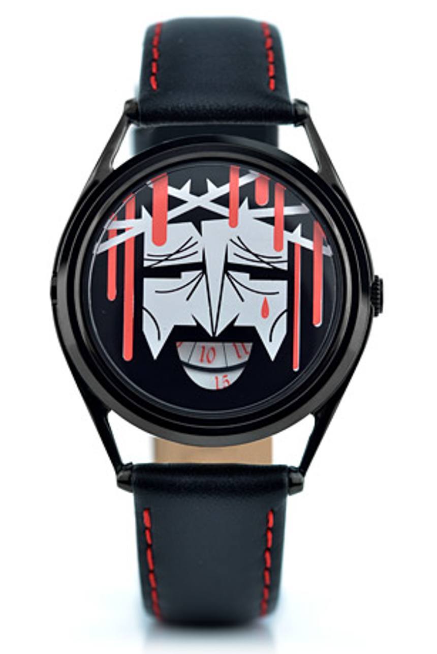 對于名為 Time Savior 的手表,Jones Watches 先生與紐約藝術家 Kirsten Ulve 合作,后者表示受到“媚俗耶穌”美學的影響。在這里,耶穌基督的性格以多種不同尋常的方式融入了流行文化。Time Savior 表盤上釘死耶穌的卡通風格意在暗示“耶穌什么時候會做什么?”的主題。佩戴者每次看表。