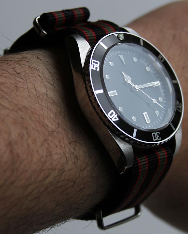 Ril 很好心地包括兩條表帶來完成你的復古幻想。有一個“賽車條紋”北約G10表帶和一個金屬手鐲。北約表帶非常簡單,沒有什么可說的了。手表搭配起來看起來不錯。金屬手鐲還不錯,實際上我喜歡它逐漸變細并使用旋入式鏈節。它還有一個潛水員的擴展(這完全是愚蠢的,因為鑒于低水阻,你不應該用這款手表潛水),有一個雙安全扣,就像幾代前的潛航者一樣。弱點在于部署扣。它使用折疊的,而不是銑削的鋼,這感覺有點小和薄。它上面也有一些太多的銳角。雖然當你戴著手表時 – 這些并不麻煩。