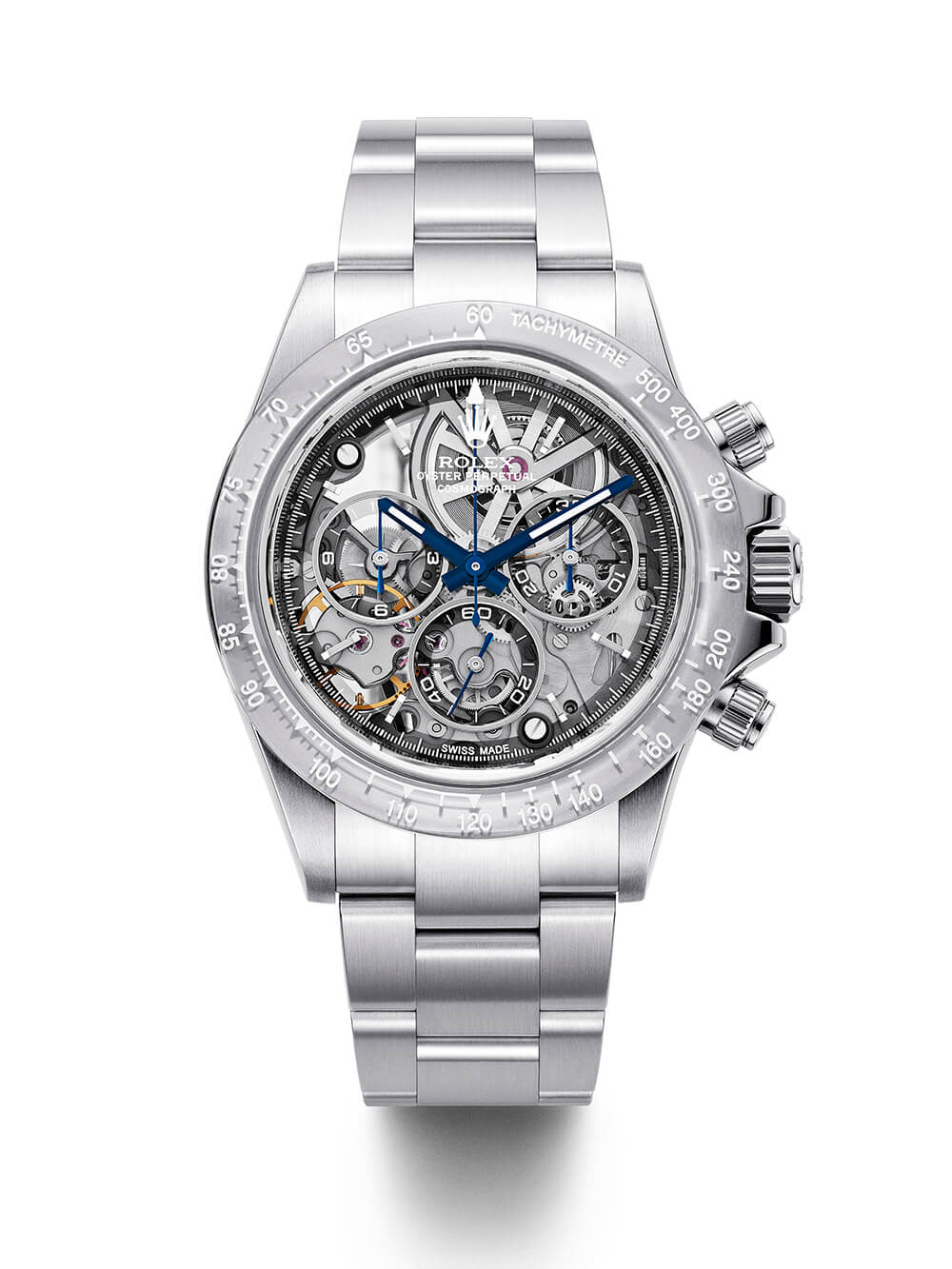 這兩個部分都是完全手工完成的,需要荒謬的工時(shí)和專業(yè)知識才能完成。更棒的是,它們呈現(xiàn)出內(nèi)部鏤空機(jī)芯的完美視圖,提供我們以前在任何勞力士從未見過的那種輕盈和透明感。配有偏光計(jì)時(shí)盤和火焰藍(lán)指針,在可讀性和鐘表暴露主義之間取得了很好的平衡。