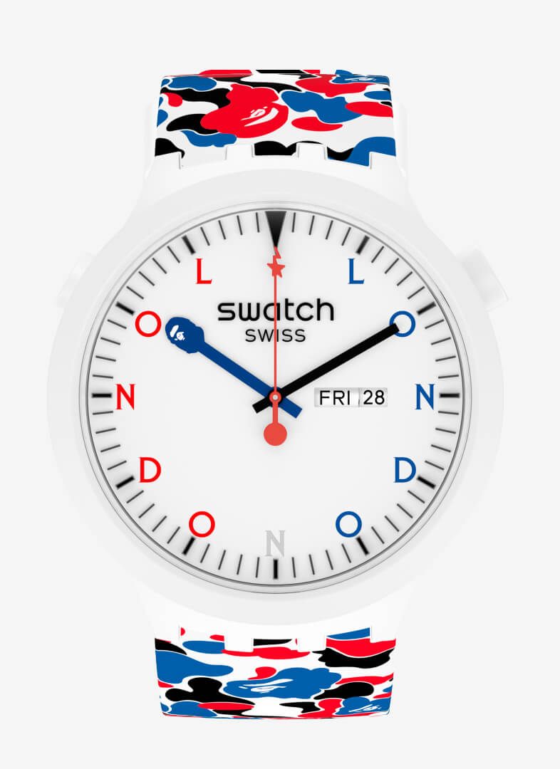 朋克、mods、grime,倫敦一直以其前衛、反文化的氛圍而自豪。誠然,日本可能是街頭服飾的現代之都,但我們自己的首都一直是街頭服飾之都。迷彩品牌 BAPE 和平易近人的制表商 Swatch 之間的最新合作具有明顯的倫敦傾向:Swatch X BAPE Con??duit Street 也就不足為奇了。