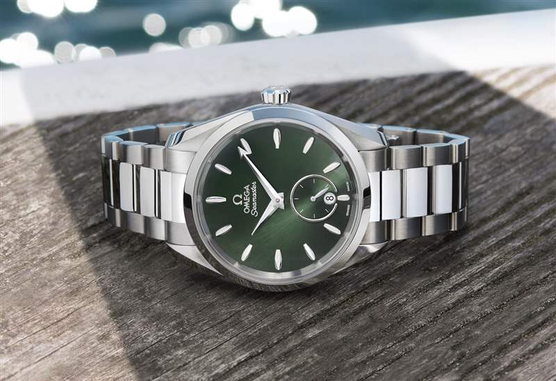 當然,對于許多年輕人來說,海馬系列更加運動、更富現代感。這款海馬系列 AQUA TERRA 150米38毫米至臻天文臺小秒針腕表顯得與傳統的海馬有很大的區別,更加簡潔干練。38毫米直徑的不銹鋼表殼采用對稱設計,表背采用波紋邊緣設計。醒目的深綠色表盤呈現出太陽射線打磨效果,6點位設有日歷窗,小秒盤的圓環經過鍍銠處理,并鑲嵌鉆石。鍍銠指針覆有白色 Super-LumiNova 夜光涂層,依次遞增的鉆石小時刻度鑲嵌于鍍銠托槽內。該表搭配深綠色皮表帶,與盤面搭配和諧。內部搭載的歐米茄8802同軸至臻天文臺機芯,通過由瑞士聯邦計量研究院(METAS)核準的至臻天文臺認證,其精準度、防磁性和整體性能均達到行業的更高標準,特別地實用。