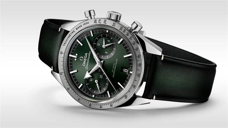 超霸系列腕表是歐米茄的標志性表款,超霸腕表參與了人類截止目前的六次登月任務,充分彰顯品牌的先鋒精神。這款表的設計靈感源自歐米茄于1957年推出的超霸原型表款,表殼直徑為40.50毫米,綠色表盤搭配鍍銠小時刻度和「闊箭」指針,均覆有白色 Super-LumiNova 夜光涂層。6點位設有日歷窗,9點位設有小秒盤,3點位則設有12小時和60分鐘計時小表盤。表圈經過拉絲處理,飾有經過黑化處理的測速刻度,表背上鐫刻「Speedmaster ’57」字樣,歷史感十足。搭配綠色皮表帶,表扣浮雕歐米茄品牌標識。特別值得一提的是,該表內部搭載歐米茄9906手動上鏈至臻天文臺機芯,讓行家們推崇異常。