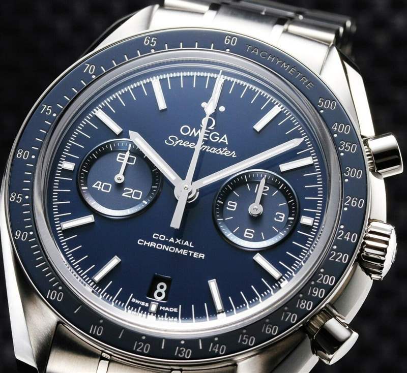 同屬超霸系列的雙小表盤款式44.25毫米同軸計時表,是品牌具有代表性的表款,以登月表為號召,自然也必須凸顯其在現代科技方面的創新。這款表配備藍色亮漆表盤,9時位置設有小秒針副表盤,3時位置的副表盤則設有12小時計時盤及60分鐘計時盤,這一特別的布置使之與其它常見的計時表明顯區別開來。44.25毫米5級鈦金屬表殼配備設有測速刻度的拋光藍色陶瓷表圈,搭配鈦金屬表鏈,具有超強的實用性。