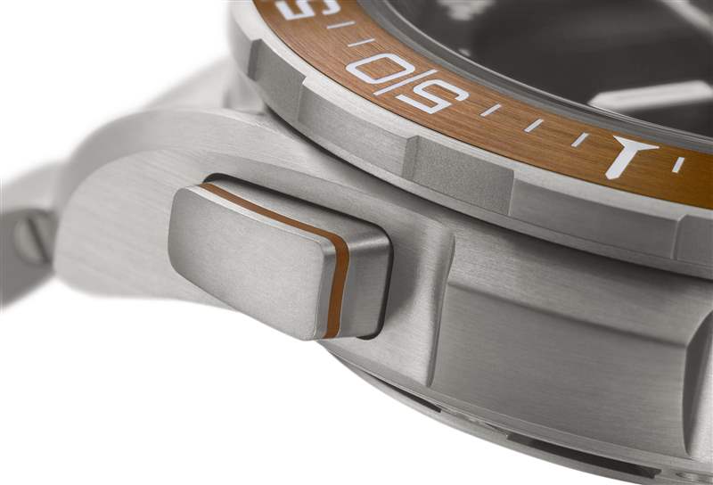 除了計時表之外,專業潛水表也是特別適合選擇鈦材質制作表殼,這一方面能夠在保持表款整體堅固的同時起到減重的作用,另外也可以讓人們日常佩戴時更加舒適。典型的代表便是海馬系列海洋宇宙腕表45.5毫米至臻天文臺表 Ultra Deep:歐米茄的 Ultra Deep 腕表曾下潛至馬里亞納海溝最深處,締造了腕表深潛的世界紀錄,而其批量制造的民用版本 Ultra Deep 防水深度也高達6,000米(20,000英尺),并通過了國際標準化組織(ISO) 6425:2018有關飽和潛水表的認證。這款表直徑45.5毫米,厚度則為18.1毫米,產品總重量僅(約)123 克,與普通的潛水表相差無幾。當然其表殼與表帶是采用經過噴砂處理的5級鈦金屬打造的。