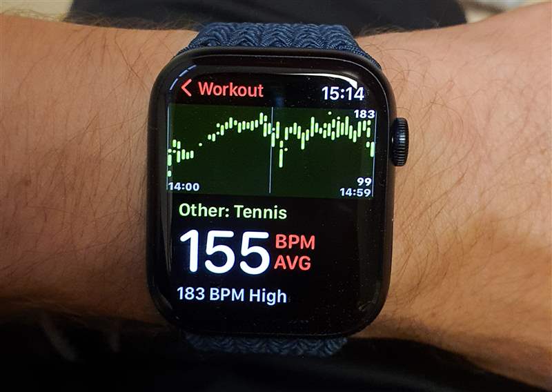 第一件事。我將支持 Ariel 關(guān)于 Apple Watch 耐用性的反饋。我手腕上的變體是 Apple Watch Series 7 GPS + Cellular,帶有 45 毫米午夜鋁制表殼。這意味著它是更柔軟、更便宜的版本——一旦你匹配了 GPS 和蜂窩連接以及編織環(huán),它比不銹鋼版本便宜約 220 美元……但我不介意。我正在關(guān)注鈦金屬版本,但它只在 Apple.com 上列出,在我拿到我的時(shí)候沒有交付,所以鋁對我來說是一個(gè)加號(hào),因?yàn)榭紤]到 3,我想要一些輕便的東西我會(huì)在 Apple Watch Series 7 上進(jìn)行 -4 次每周鍛煉/網(wǎng)球訓(xùn)練。