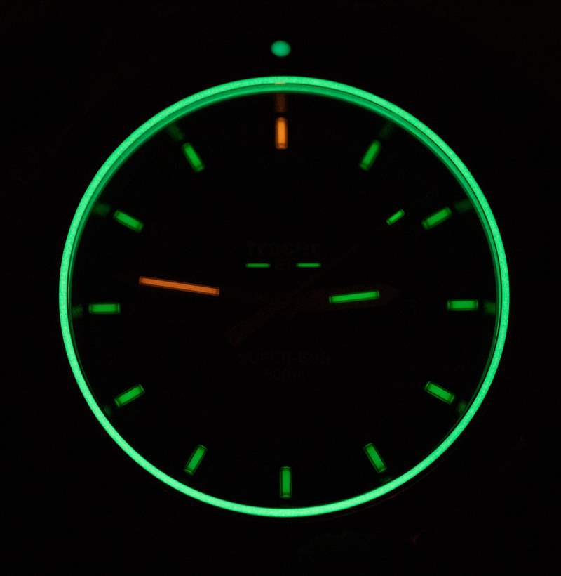 從資深腕表愛好者的角度來看,P67 最令人印象深刻的新奇特征是表盤外圍的發光體。在手表處于黑暗中之前,您不會真正注意到這一點,但除了用于時標和指針的氚氣管外,藍寶石水晶下方還有一個額外的發光環。事實上,根據 Traser 的說法,發光的是玻璃密封膠本身。過去我可能在一些非常高端的手表上看到過這個功能,但據我所知,在這個價位上沒有其他類似的東西了。它也恰好看起來很酷……廣告訊息廣告信息結束