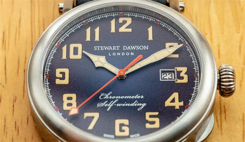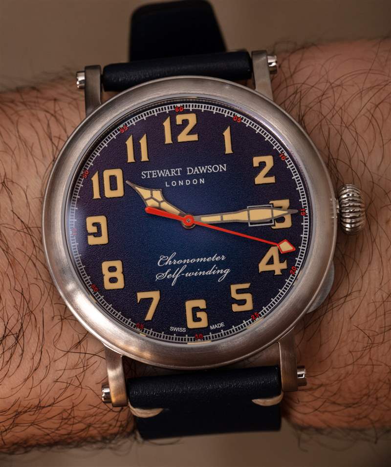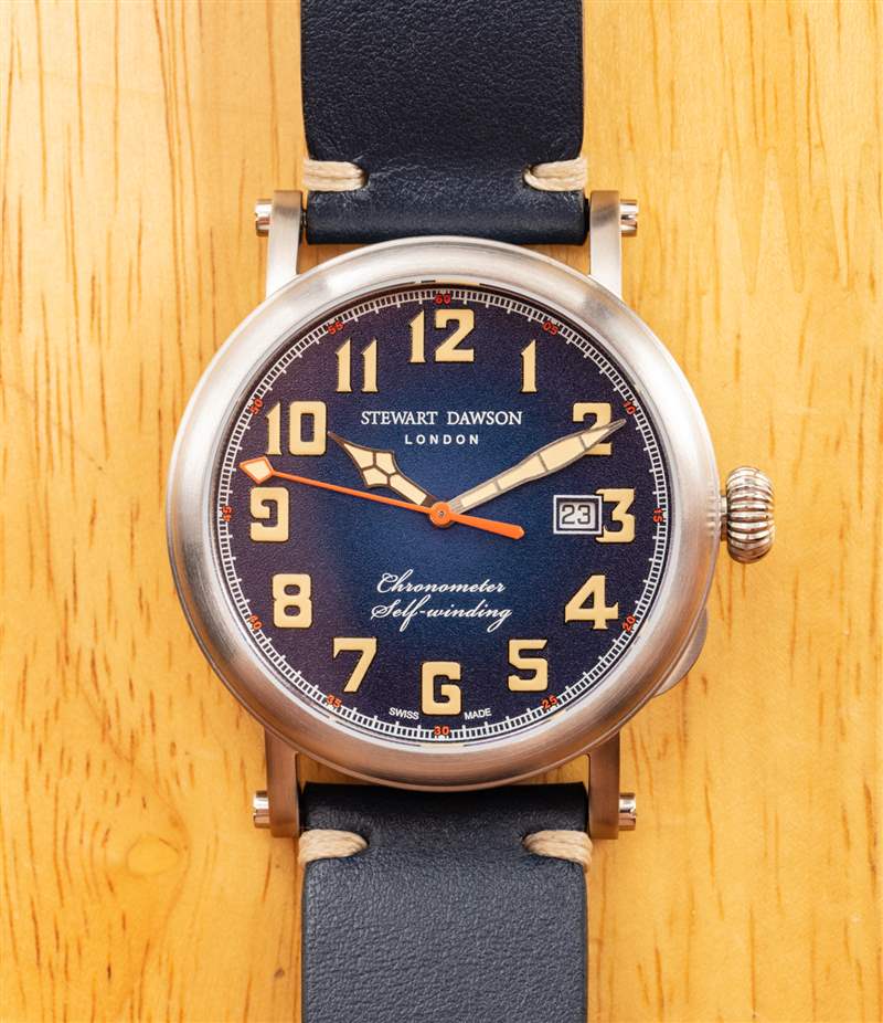 表盤上方是一塊扁平的 AR 涂層藍寶石水晶,我實際上認為稍微圓頂會更好。事實上,Stewart Dawson 需要花費更多并處理更多關于正確的 AR 涂層技術的頭痛問題(這在曲面上更具有挑戰性),但我認為這將有助于使這看起來像一個均勻的更貴的時計。