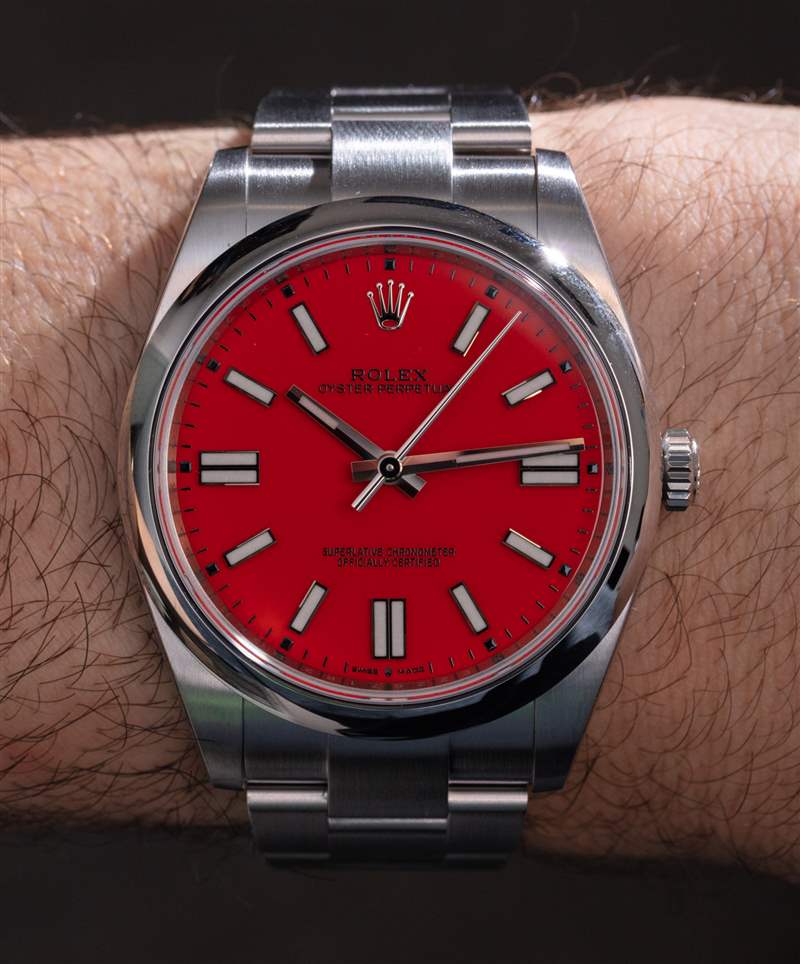 當勞力士稱紅色表盤為“珊瑚紅”時,它并不是在開玩笑。與勞力士自己的營銷圖像不同,珊瑚紅顏色更偏橙色,而不像從圖像中推斷的“消防車紅”。橙色是為了稍微軟化顏色,但我確實認為運動手表愛好者會想要一個稍微大膽的紅色。盡管如此,珊瑚紅色表盤是一個不錯的選擇,前提是它很明顯帶有非常明顯的橙色色調。廣告訊息廣告信息結束