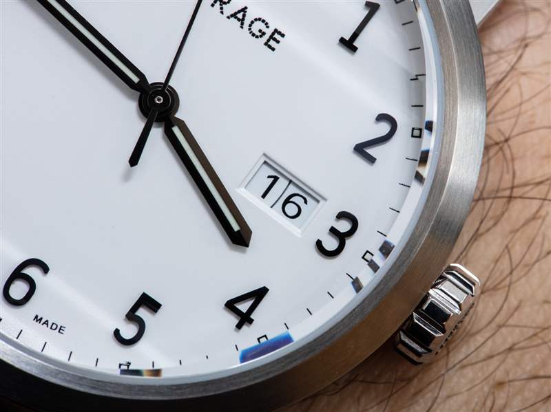 在功能上,Omnium 中的 K1 具有時間以及“大日期”指示器(具有諷刺意味的是,這是一個相當小巧的“大日期”)。大日期指示器是使用兩個圓盤來指示日期的一種(而不是僅一個)。使用這樣的系統是因為它們允許更大的數字。就 K1 而言,使用兩盤日期顯示的原因似乎不同:Horage 想要一個不需要移除一個時標的日期窗口。因此,即使表盤3點鐘位置有日期,3點鐘小時指示也有存在的空間。雖然我可能是錯的,但我認為 Horage 的某個人討厭為了顯示日期而必須移除小時標記,因此他們為此創建了一個解決方案。