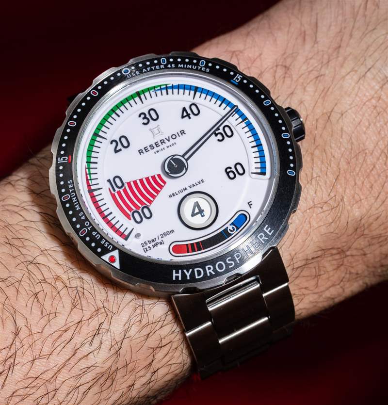 Reservoir 生產了幾個版本的 Hydrosphere 時計,其表盤顏色和表殼材料各不相同。我特別喜歡 Hydrosphere Air Gauge,因為正如產品名稱所暗示的那樣,表盤很容易讓人聯想到模擬空氣壓力計。這種特殊的 SCUBA 潛水儀器的一個有趣的事情是,大多數 BCD 裝置(裝有空氣罐的背心潛水員服裝)都有一個看起來幾乎與手表相同的氣壓計。這意味著今天大多數休閑潛水員都使用過這樣的氣壓計并通過視覺識別它們。為什么這很重要?因為 Reservoir Hydrosphere Air Gauge 是當今僅有的在視覺上與當今潛水設備相匹配的豪華潛水表之一。這意味著手表表盤不僅對手表愛好者來說既相關又熟悉,廣告訊息廣告信息結束