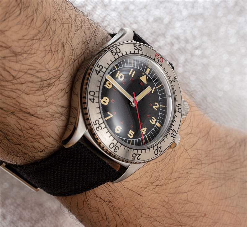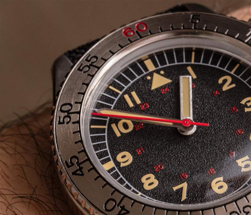 Undone Aero 通過在傳統的旋轉表圈上提供扭曲,結合了 Weems 秒設置刻度。在這里,旋轉表圈可在兩個方向上自由移動,并帶有 60 秒刻度。表圈在 2 點鐘位置有一個類似皇冠的螺絲,可用于擰緊表圈,使其不會移位。這使得表圈能夠像近 100 年前首次推出的 Weems Second Setting 系統一樣發揮作用。可以說,這也是 Undone 生產的第一款以航空手表為靈感的產品。
