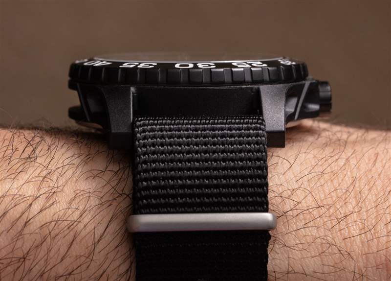 P66 Automatic Pro 45 毫米寬的表殼尺寸肯定會引起一些收藏家的關注。我不會稱它太大,但手表確實感覺好像它可能是 42 毫米寬并且做所有相同的事情。也就是說,這款手表無緣無故地不是 45 毫米寬。唉,我相信內部鋼殼和外部加固聚合物外殼的雙殼結構設計是大尺寸的必要原因。表殼厚度也約為 13 毫米,凸耳到凸耳的距離約為 54 毫米。耐磨性如何?相當不錯,其實。手表仍然主要是鋼制的,所以手腕上感覺不太輕,盡管由于黑色聚合物外殼,手表感覺不像是 45 毫米寬的手表。有幫助的是 P66 Automatic Pro 的定制北約風格或橡膠表帶使其佩戴舒適舒適。廣告訊息廣告信息結束