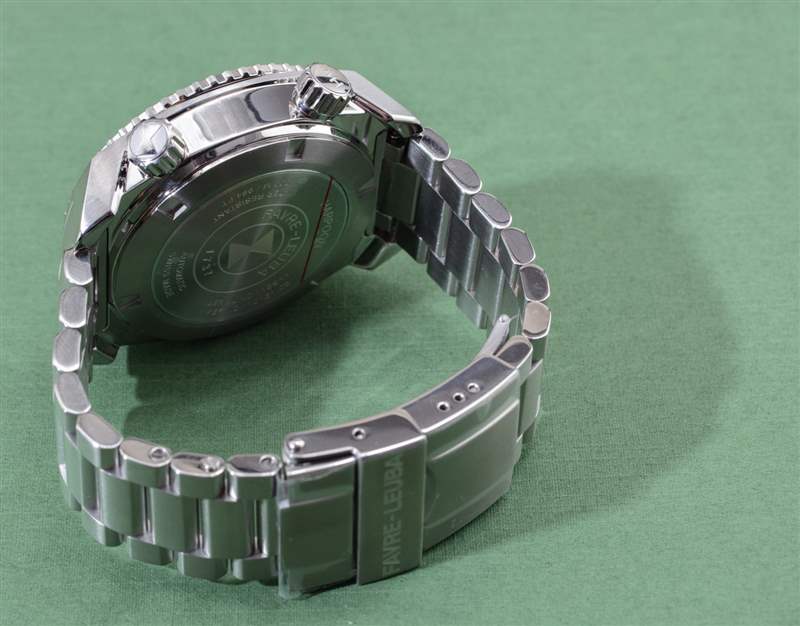 為手表提供動力的是基礎瑞士制造的 Sellita SW200 自動機芯(4Hz,具有約 42 小時動力儲備),該機芯使用專有模塊,可以以這種特殊方式指示時間。這是表殼如此厚實的原因之一,但我再次認為結實的比例有利于整體設計。不幸的是,在底蓋上看不到機芯,但每只手表都有一個唯一的序列號——即使在許多豪華手表上,這實際上也不是通用的。我還發現 Favre-Leuba 包含手表的實際參考編號很有用,這意味著不知道它是什么的人可以輕松地在網上查找有關它的信息。我指出這一點,因為它再次是一個非標準且受歡迎的功能。