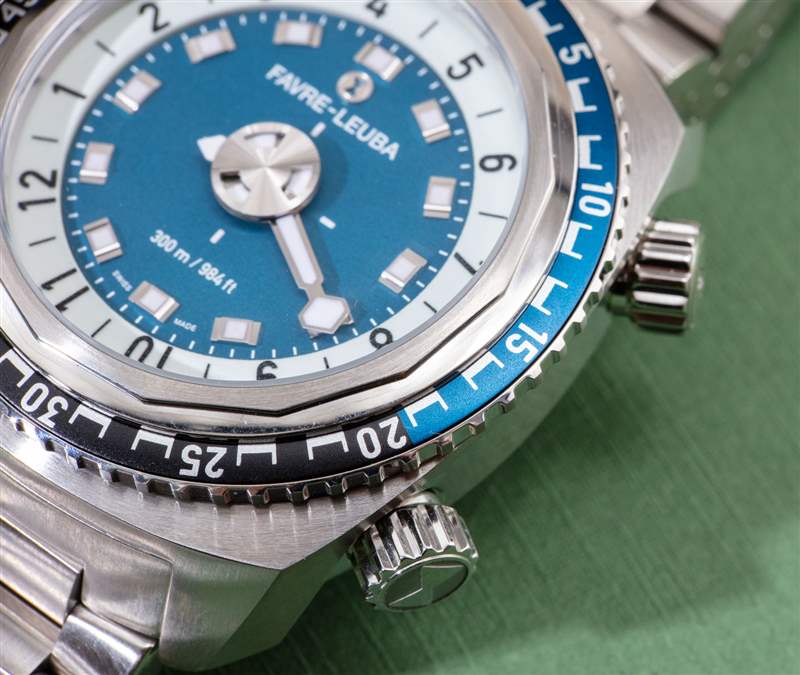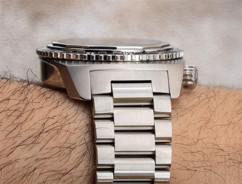 表殼有兩個表冠,這是我通常不太喜歡的外觀,但在這里并沒有打擾我,有趣的是。不過,您只會使用一頂王冠。上表冠實際上是一個手動排氦閥——它比自動排氦閥的用處要小一些,自動排氦閥本身對一小部分佩戴潛水表的人有用,并且是需要的特殊類型的軍事或商業潛水員在減壓室里閑逛。與 Favre-Leuba Raider Harpoon 共享此功能的最著名的手表是 Omega Seamaster 300M(它也有一個“殘留的”手動氦氣釋放閥)。為什么會在那里?風格,對于一個人來說——這是可以談論的。在許多鐘表愛好者圈子中,講故事通常比手表中的實用功能更有價值。