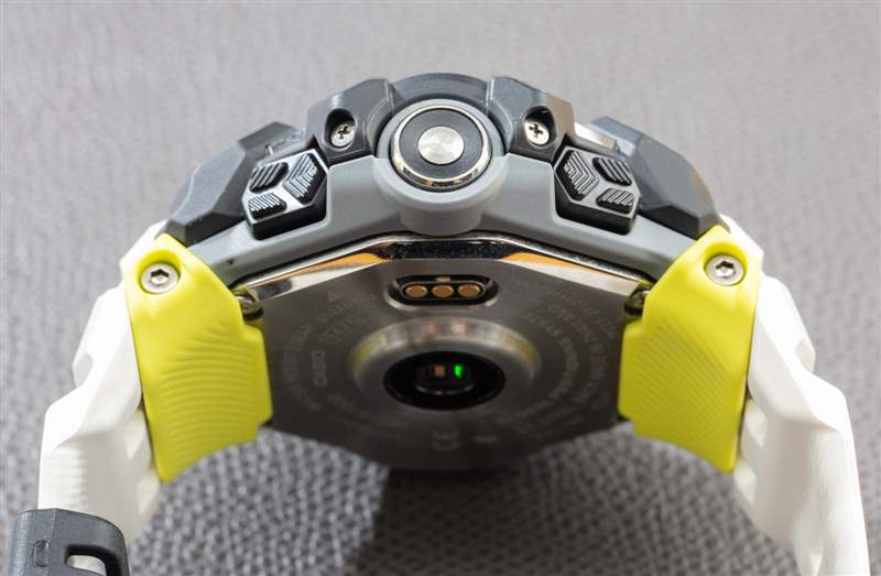 因此,一般來說,消費者對智能手表和活動追蹤器最常見的抱怨之一就是需要定期充電。GBD-H1000 既有被動式太陽能充電系統(光伏電池實際上是屏幕周圍的一圈),也可以使用基于 USB 的磁性電纜充電。卡西歐的賣點在于,在大多數情況下,您可以像使用任何其他 G-Shock 時計一樣佩戴和使用 G-Shock Move,而無需像智能手表那樣定期充電。也就是說,如果您經常使用諸如 GPS 跟蹤之類的耗電功能,那么光動力系統將無法跟上電池消耗的速度。依靠 GBD-H1000 進行重復、長間隔跟蹤時,您可以根據需要為電池充電。