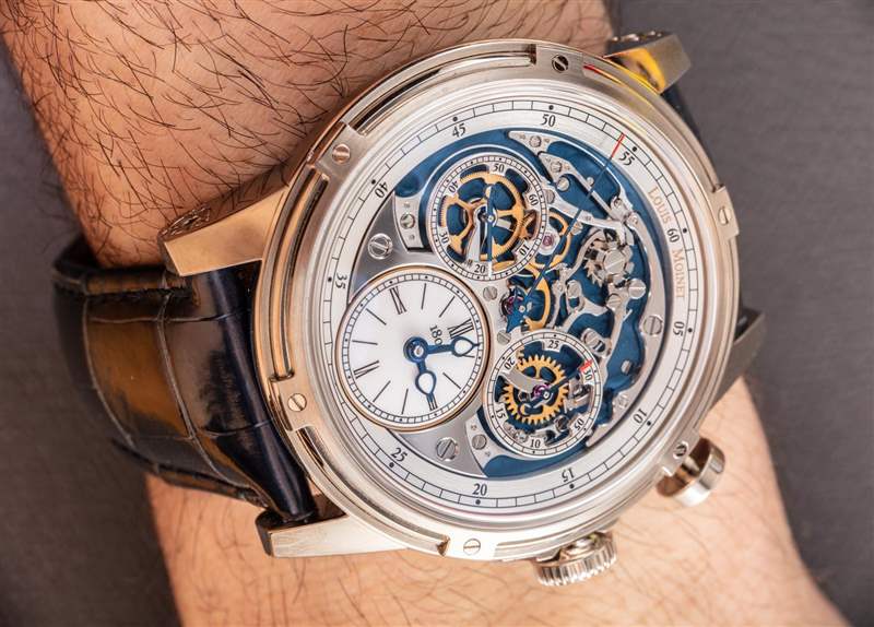 Memoris 戴在手腕上很大,因為它很大。這是品牌整個主題的一部分。Louis Moinet 制作具有美國情調的傳統手表。不,它不是美國品牌,但它似乎接受了我們美國人對大尺寸、大膽展示和情感故事的熱愛。Louis Moinet 手表似乎最適合那些希望在手腕上炫耀自己的文化和奢華品味的真正享受生活的人。Louis Moinet 手表在這個意義上是華而不實的,但與今天一直存在的“bling-bling”文化相比,它的方式更加文雅。