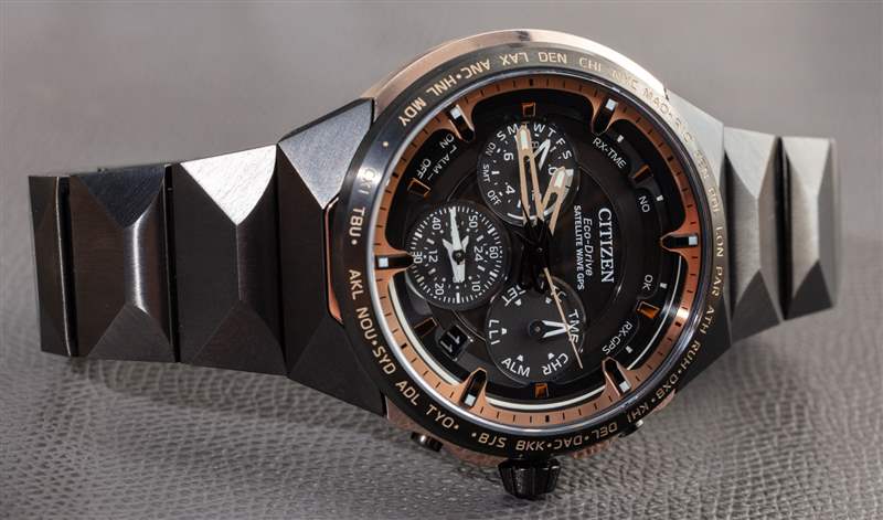 除了與 Super Titanium 表殼和表鏈其余部分的無煙煤色調形成鮮明對比的“Sakura”粉紅金色涂層 Super Titanium 外,該產品還旨在慶祝 Citizen 在 GPS 運動方面取得的成就。日本三大制表商都擁有自己的 GPS 手表——這一重點幾乎完全是日本人(如果不考慮智能手表)。F950 機芯是一個有趣的系統,代表了西鐵城多年來制作的一系列系統。在這方面,西鐵城的動作原則上與卡西歐等品牌的動作相似,隨著時間的推移,持續的改進和新功能不斷積累。