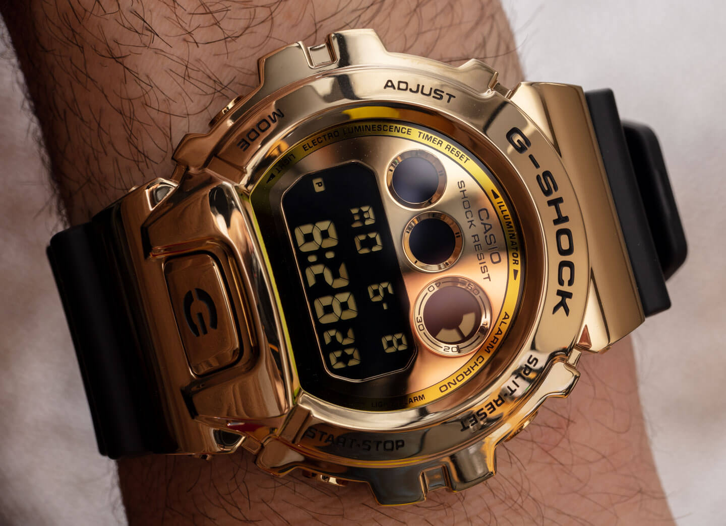 在金屬方面,GM6900 看起來很棒,因為外殼的拋光和整體結構做得很好。鑒于黃金色調和負液晶顯示屏,我不是唯一一個看到這款手表并說:“卡西歐在考慮星球大戰的C-3PO 機器人嗎?” 也許他們是,或者也許只是鐘表行業那些有趣的巧合之一,當手表讓我們想起流行文化中的某些東西時。廣告訊息廣告信息結束