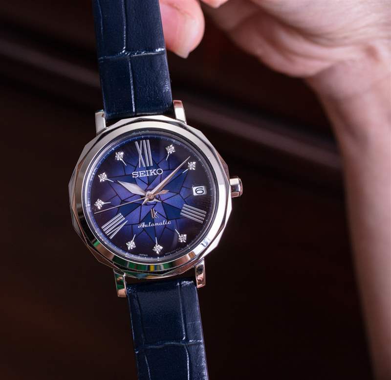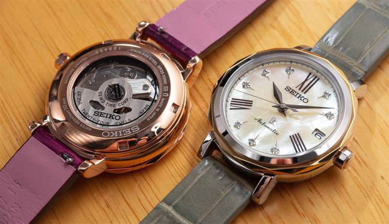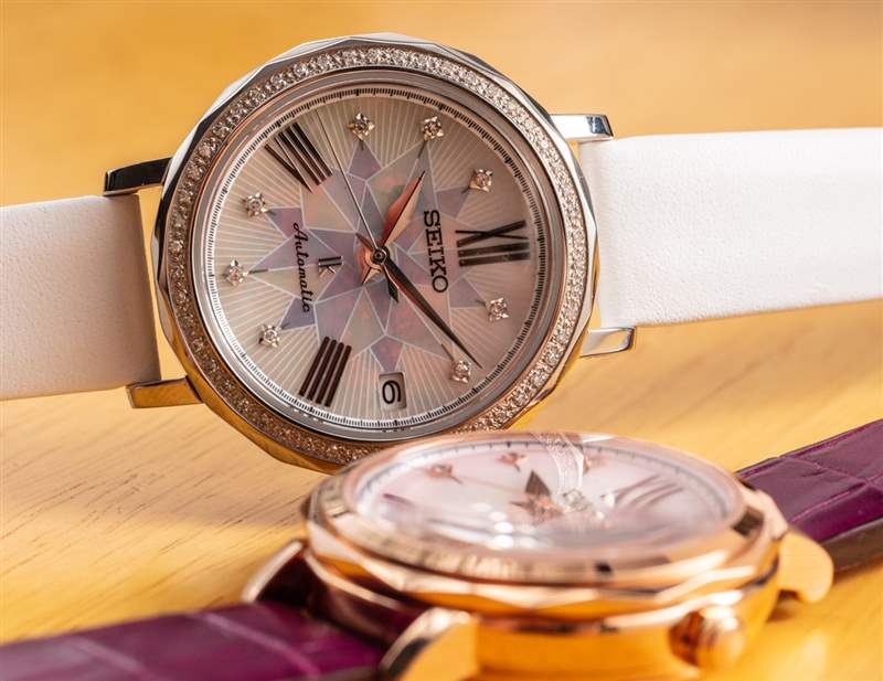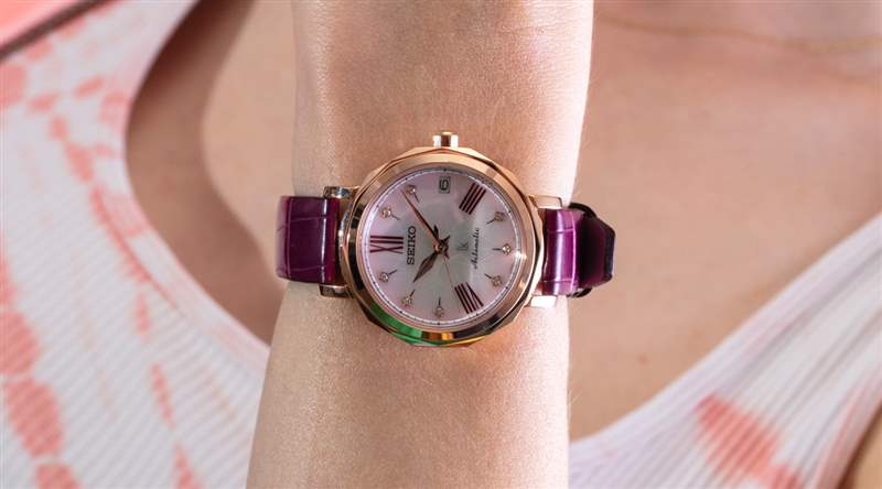 每個表殼的寬度為 34.8 毫米,這與您想要的手表一樣大,其比例仍然具有內在的女性氣質。這款手表相對較薄,但考慮到內部的機械自動機芯,它不會像精工最纖薄的石英表那么薄。在一般女性的手腕上,這個近 35 毫米寬的表殼尺寸足夠大膽,但又不會太大,以至于在視覺上過于強烈或被誤認為是男性化的東西。