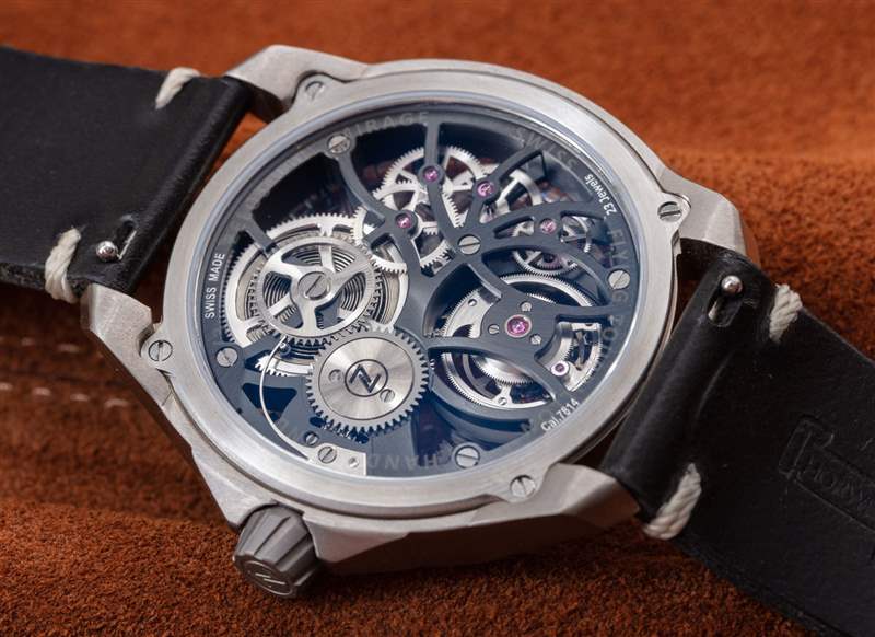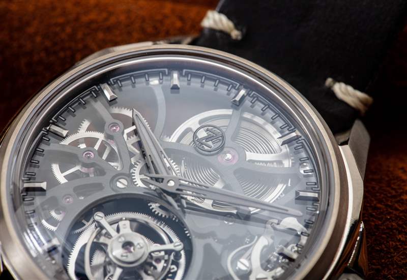 這些表殼本身就是 Mirage Tourbillon 賣點的一部分。這種天然鈦金屬版本在視覺上是最不“令人興奮”的,但對保守的佩戴者有好處。將其與其他三個使用“Timascus”(大馬士革式鈦金屬)的 Mirage Tourbillon 版本進行比較。它使用金屬折疊以獲得木紋外觀對于鈦來說非常罕見。最重要的是,折疊在一起的鈦與暴露于熱時略有不同。這為 Mirage Tourbillon 表殼的某些版本提供了美麗的顏色,如紫羅蘭色和藍色。Zelos 還擁有 Mirage Tourbillon 的 Mokume Gane 版本,帶有大馬士革風格的表殼,由銅和鎳金屬制成,隨著時間的推移會產生光澤。確實,應用于案例工作的創造力和藝術性非常特別。
