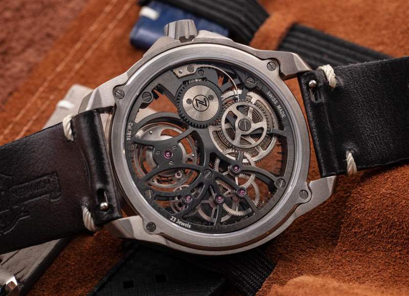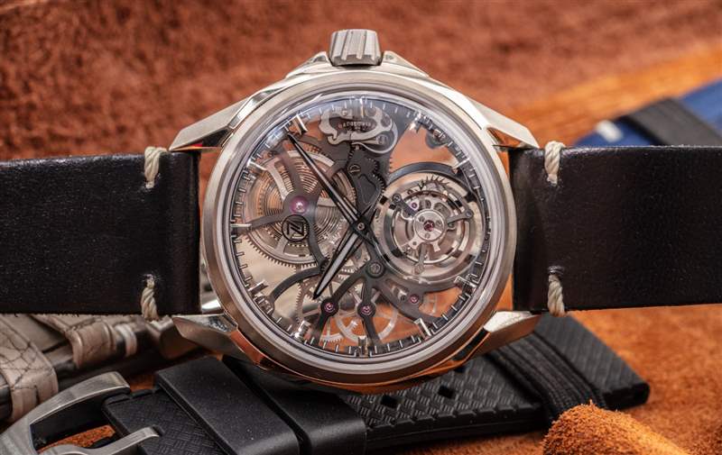 Zelos Mirage Tourbillon 腕表最初(或可能永遠)將成為限量版套裝的一部分。這款天然鈦金屬腕表(帶有 PVD ??主夾板)將限量生產兩枚。在四種不同的幻影陀飛輪模型中,Zelos 只生產了 10 件。該品牌將它們定位為光環產品,以幫助完善其不斷增長的以運動風格為主的手表系列。