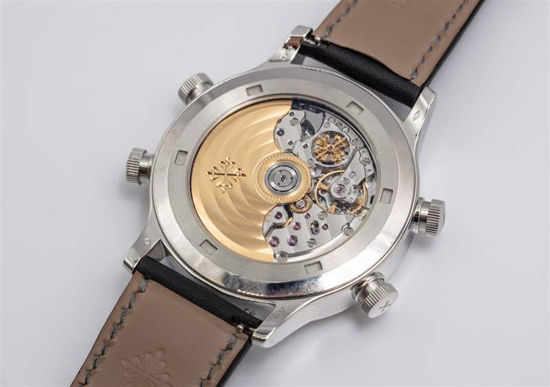 5520P 的其他復雜功能包括兩個 12 小時制時區和一個日期表盤。盡管表盤的整體呈現優雅且盡可能簡單,但引擎蓋下還有很多事情要做,我同意百達翡麗的觀點,即 5520P 鬧鈴走時是一個合法的大復雜功能。它恰好是您可以每天佩戴的一種。通過底蓋可以看到自動機芯,百達翡麗在設計和裝飾上都非常漂亮。整個機芯由 574 個零件組成,工作頻率為 4 赫茲,具有 52 小時的動力儲存,并包括典型的高性能專有百達翡麗組件。廣告訊息廣告信息結束
