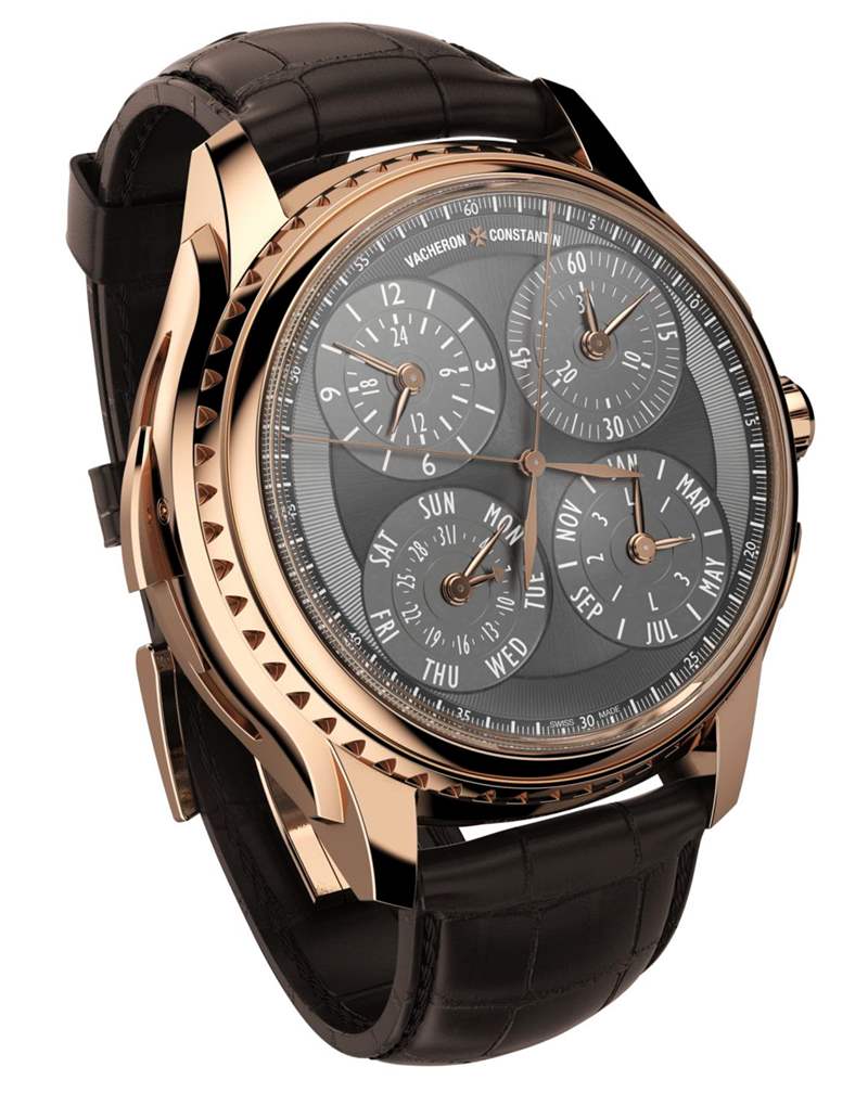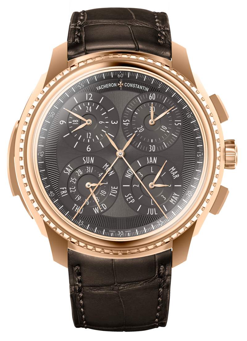 江詩丹頓將帶有四個小表盤的表面視為手表的主表盤。它的特點是左上子表盤上的時間,右上子表盤上的計時碼表,兩個下子表盤是為萬年歷復雜指標保留的。主表盤用于雙追針計時秒針。我發現有趣的是表盤對計時碼表的可用性的關注程度——這說明了所有者的意圖。