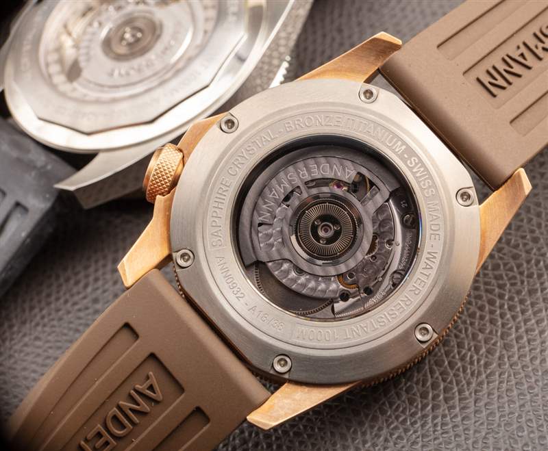 安德斯曼使用青銅、鈦和藍(lán)寶石水晶作為主要表殼組件的混合物。底蓋是鈦(帶有藍(lán)寶石水晶窗),主表殼是銅和錫混合的青銅 CuSn8 合金混合物,安德斯曼說這是一種相當(dāng)耐腐蝕的金屬形式。青銅并不是所有鐘表愛好者都選擇的手表材料,但大多數(shù)鐘表愛好者應(yīng)該在他們的收藏中至少擁有一款青銅鐘表,看看有什么大驚小怪的。青銅首先受益于它的顏色,它“似金”,明顯比鋼更暖色調(diào)。隨著金屬氧化,青銅也會(huì)隨著時(shí)間的推移而改變顏色。對(duì)于某些人來說,這是悲慘的,對(duì)他們來說,鋼、金或其他更穩(wěn)定的材料將成為更好的表殼材料。然而,青銅粉絲,