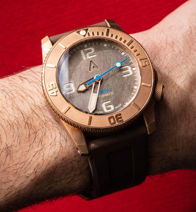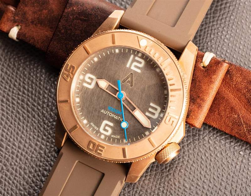 耐腐蝕青銅很有幫助,因?yàn)檫@意味著即使在有鹽的地方(空氣或水中),表殼也不會(huì)腐蝕,上面有綠色斑點(diǎn),也會(huì)磨損到皮膚上。在這里你可以看到全新形式的安德斯曼青銅表,但幾年后表殼會(huì)變暗——不過,根據(jù)我的經(jīng)驗(yàn),這種青銅合金變暗相對(duì)均勻,而其他一些青銅表開始出現(xiàn)我認(rèn)為沒有吸引力的黑色或其他顏色斑點(diǎn)。我更喜歡均勻的銅綠。廣告訊息廣告信息結(jié)束