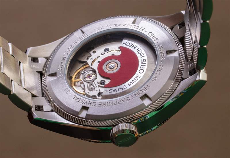 手表內(nèi)部是 Oris 所謂的 751 型自動機芯。它是瑞士制造的 Sellita SW220-1 底座,配有標(biāo)志性的紅色 Oris 自動轉(zhuǎn)子。展示底蓋提供了運動的視圖,盡管基礎(chǔ)運動的裝飾更精美會很好(因為它會與 Oris 似乎與 ProPilot Big Date 鐘表系列一起使用的更時尚的主題。機芯以 4Hz 頻率運作,動力儲存 38 小時。