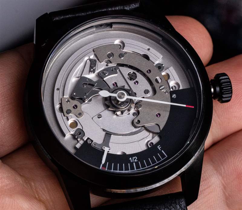 就個人而言,我并不熱衷于測試其他人的模擬計時能力,而是喜歡這些提高易讀性的實驗。根據表盤設計,我實際上發現跳時表比傳統的中央安裝時針和分針的手表更容易一目了然。鑒于 Reservoir 時間指示系統有一個不會立即發生的輕微訓練曲線,我懷疑只佩戴這款手表幾周將使佩戴者能夠以同樣快的速度閱讀時間,如果不是比在傳統的模擬手表表盤顯示上顯示時間。