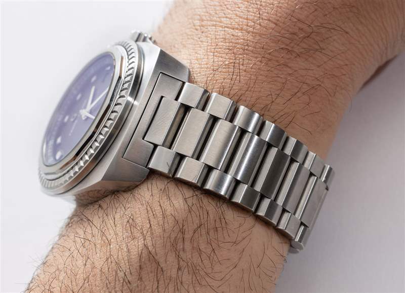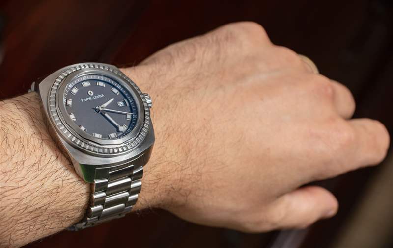 如果我必須對(duì)手表提出其他建議以便 Favre-Leuba 改進(jìn)它,那么我會(huì)要求更復(fù)雜的手鏈展開器。也許我已經(jīng)被帶有微調(diào)功能的手鏈的美妙世界寵壞了,但是一個(gè)簡單的蝴蝶式展開器根本不再給我留下深刻的印象。Raider Sea King 手鐲鏈節(jié)的尺寸意味著對(duì)于我的手腕(它會(huì)根據(jù)您的特定手腕解剖結(jié)構(gòu)而有所不同),它要么太松要么太緊。我更喜歡貼身的手表,所以我把它的尺寸定在了它會(huì)收縮我手腕的地方,如果再小一點(diǎn)的話。為了測試手腕伸展時(shí)的舒適度,我在去香港旅行時(shí)隨身攜帶了 Raider Sea King。我特別想看看在炎熱潮濕的氣候中呆了幾個(gè)小時(shí)后會(huì)有什么感覺。出奇,手表沒有卡住我的手腕,我也沒有覺得不舒服。關(guān)鍵是如果手鐲確實(shí)有微調(diào),那么假設(shè)手表暫時(shí)感覺很緊,我可以擴(kuò)大一點(diǎn)。當(dāng)然,如果您將這樣的手表帶入這樣的氣候,最明智的做法是取下表鏈并使用橡膠表帶(潮濕的天氣和皮革表帶不會(huì)很好地混合在一起)。