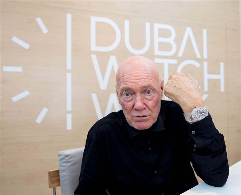 我在迪拜遇到了鐘表業(yè)傳奇人物讓-克勞德·比弗,他在前往香港的途中來到迪拜鐘表周發(fā)表演講。幾個(gè)月后,Jean-Claude Biver 在 LVMH 的合同——自從這家大型法國奢侈品集團(tuán)收購了“他的”品牌 Hublot 以來,我們一直在那里工作——將到期。這標(biāo)志著這位 71 歲的老人正式離開手表行業(yè),盡管他很快指出他并沒有放棄他的“激情”(即手表)。