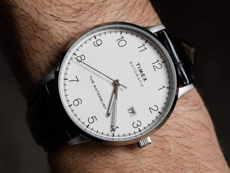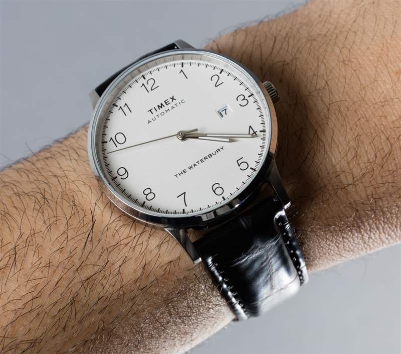 沃特伯里是 Timex 所在的康涅狄格州最初城市的名稱。此后,它把總部搬到了幾英里外,但品牌中的“沃特伯里”精神根深蒂固,這個(gè)品牌似乎適用于其更具“昨日風(fēng)采”的產(chǎn)品。沃特伯里經(jīng)典自動(dòng)腕表看似簡(jiǎn)單,但表盤的比例和易讀性非常好。它讀起來(lái)就像一個(gè)非常舒適的掛鐘——這是一件好事。阿拉伯小時(shí)數(shù)字環(huán)很吸引人,搭配大小合適的時(shí)針、分針和秒針。3點(diǎn)鐘附近的日期窗口稍微設(shè)置了一點(diǎn),不需要移除3點(diǎn)鐘的小時(shí)標(biāo)記。階梯式日期窗口是一種微妙而精致的觸感,提升了時(shí)計(jì)的整體外觀。廣告訊息廣告信息結(jié)束