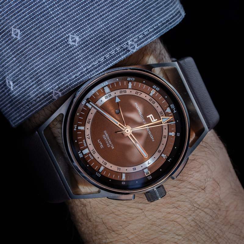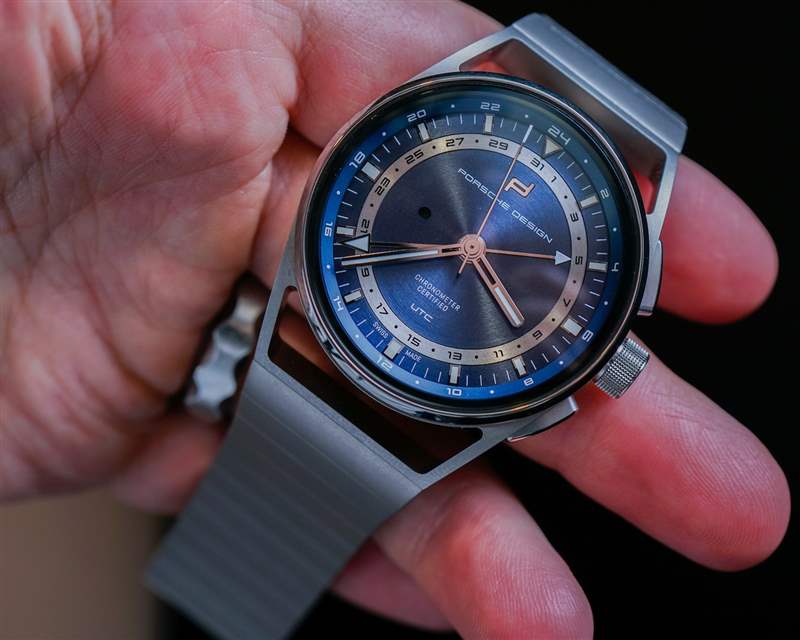 Porsche Design 現(xiàn)在的整體質(zhì)量和結(jié)構(gòu)確實(shí)令人印象深刻。1919 Globetimer UTC 的細(xì)節(jié)包括拋光鈦金屬表圈和按鈕上的一些角度。帶紋理的表冠既好看又抓握非常舒適。表盤既吸引人又清晰易讀,即使它不會立即讓您覺得新穎或與眾不同。我真正喜歡 1919 年 Globetimer UTC 的地方在于,你真的感覺到這是一款現(xiàn)代設(shè)計(jì)的產(chǎn)品,但它源于悠久的專業(yè)知識和風(fēng)格傳統(tǒng),與當(dāng)今最好的汽車的感覺非常相似。有點(diǎn)像保時捷汽車?保時捷設(shè)計(jì)公司愿意這樣想。