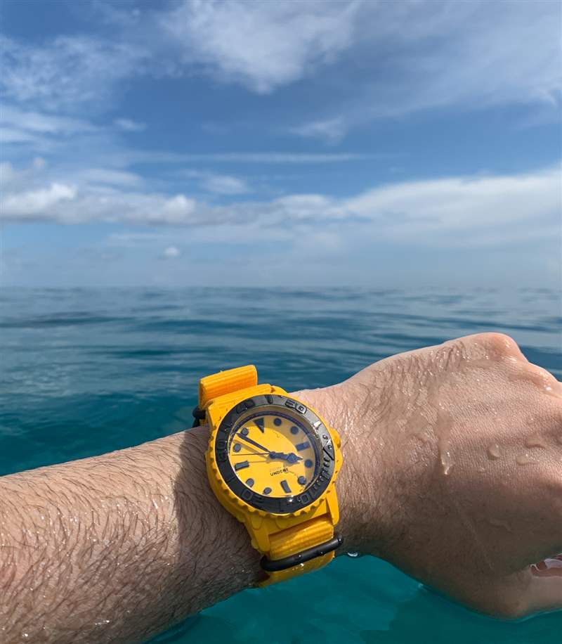 對我來說幸運的是,我其實很喜歡游泳。這種品質并不能定義每個對潛水表充滿熱情的人。每次有機會,我都喜歡用專為此目的設計的時計在水中做些事情。最近,我有機會帶著我設計的手表——Undone?Aqua BLK + YLW——去了世界上最好的游泳地點之一:巴哈馬(更具體地說,是我第一次旅行的拿騷島)時間)。在這個受歡迎的旅游目的地,我每天至少要花兩個小時(通常更多)在水中。在那里,潛水表不僅僅是一件奢侈品,它還是一個工具。