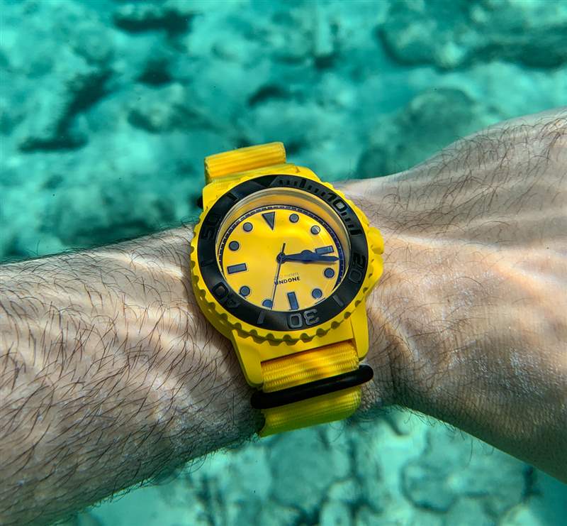 是的,我對 Undone Aqua BLK + YLW 有商業利益,但零售價僅為585 美元(利潤分成多種方式),我認為我不需要在這里為不公平的利潤辯護。我的目標是為像我這樣的鐘表愛好者帶來有趣、方便和有趣的腕表體驗——在佩戴我的 Undone Aqua BLK + YLW 之后,我覺得我已經能夠(至少對我自己)做到這一點。